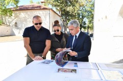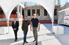 İlham Əliyev və birinci xanım Şuşada orta məktəbin binasında tikinti işlərinin gedişi ilə tanış olublar