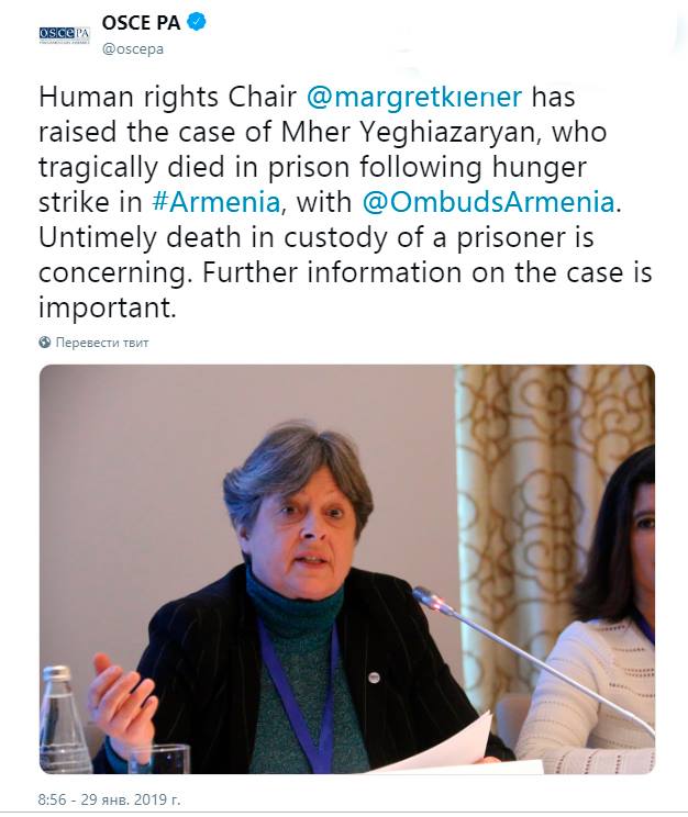 Aclıq aksiyasında ölən siyasi məhbus... - ATƏT PA-nın komitə sədri rəsmi İrəvandan araşdırma tələb etdi