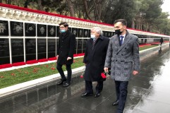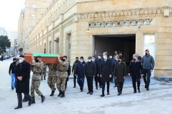 Vilayət Eyvazov və nazir müavinləri şəhid hərbi qulluqçusunun vida mərasimində – FOTO
