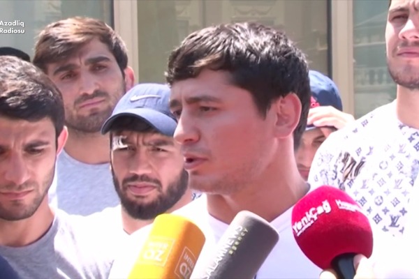 Boksçu nazirliyin qarşısında özünü yandırmaq istədi: "Əgər cəsarətiniz varsa, mənə yaxınlaşın" - VİDEO