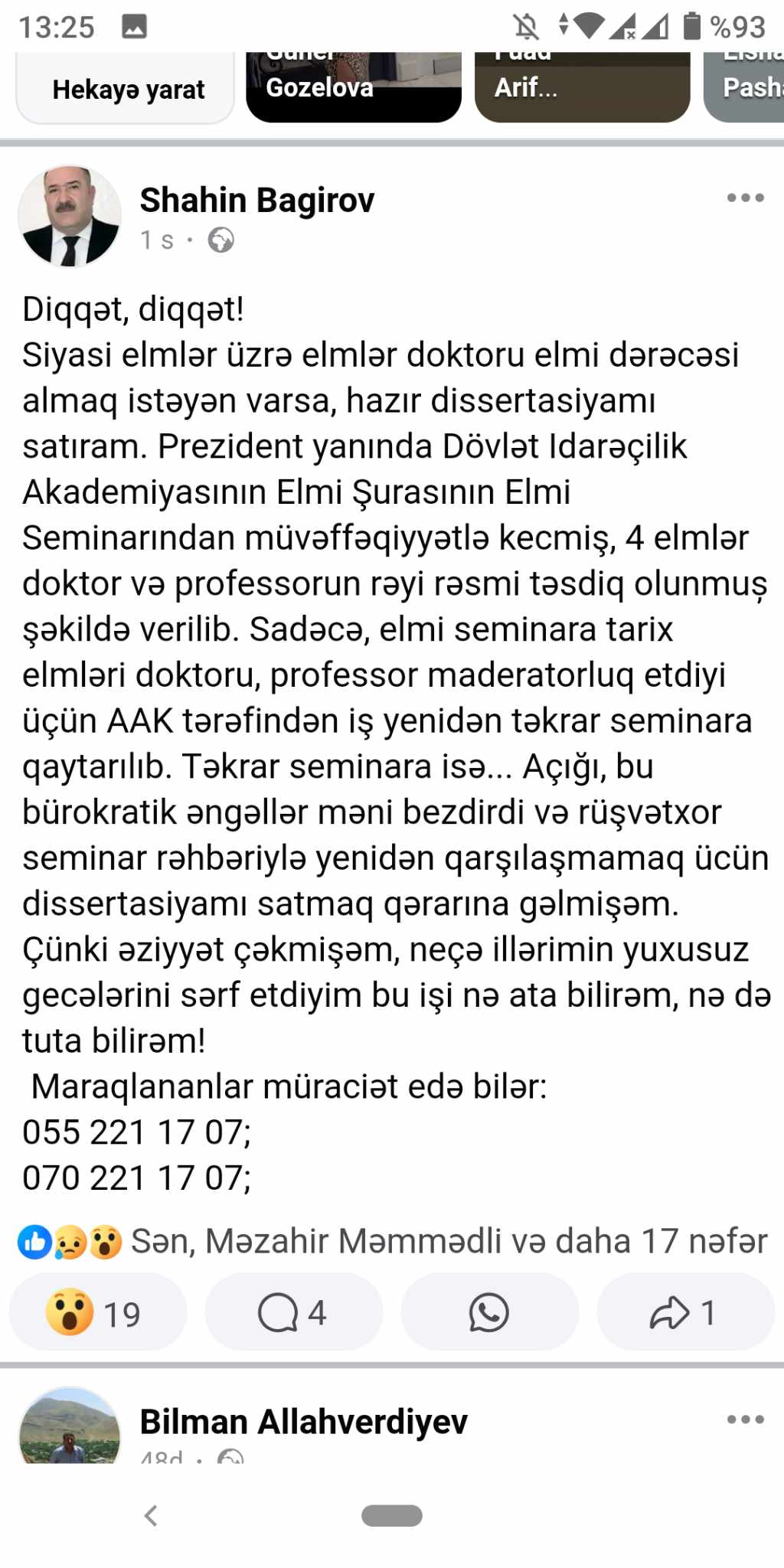 AMEA-nın əməkdaşı dissertasiya işini satışa çıxardı: "Almaq istəyən varsa..."