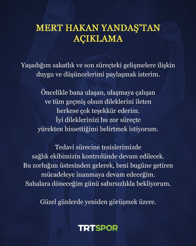 Ayağı kəsiləcək deyilən Mert Hakan Yandaşdan açıqlama: "Meydana dönməyi səbrsizliklə gözləyirəm"